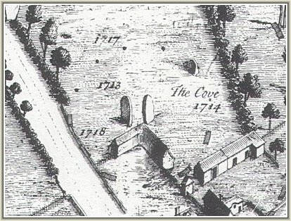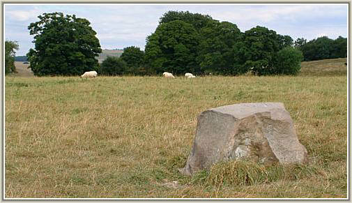 William Stukeley's plan of the henge shows a stone removed in 1714 that once existed to the east of the Cove though in the same area stones are still visible peeping through the grass in this photograph.