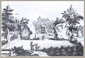Some 70 years later, during the first part of the 18th Century, William Stukeley (1687 - 1765) became the antiquarian who devoted his time to Avebury and so much of what is known about the more recent history is attributable to him. Not only did he chronicle his visits he also drew much of what he saw. He mistakenly allied the Avebury monuments to the Druids and believed the henge and avenues to be a representation of a giant serpent but his ideas were no more fanciful than many that have followed since. His findings at Avebury were published in 1743 in his "Abury, A Temple of the British Druids". It is his illustrations and records that have proved so valuable in helping us realize what a magnificent and extensive undertaking the Avebury monuments were. During his visits to Avebury he had to witness much of the unforgivable destruction that took place at that time. His contribution has been vital to the history of the monuments for without it researchers would have great difficulty in interpreting what is there now. The recent discoveries in the Beckhampton Avenue have only occurred as a result of Stukeley's earlier observations. If he hadn't taken a keen interest in the Avebury monuments one wonders how long it would have taken later researchers to suspect the avenue's existence and if it would have ever been found.