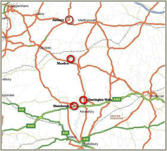 Almost completely destroyed the remains of Marden Henge are now barely visible. It is situated roughly mid-way between Avebury and Stonehenge and enclosed an area even larger than either Avebury or Durrington. Within it a massive mound known as Hatfield Barrow once existed which has now also been eradicated by continuous farming. Excavation of the site hasn't been very extensive but has established that it belongs to the Neolithic period. Quite how it relates to Avebury and Stonehenge/Durrington can only be guessed at.