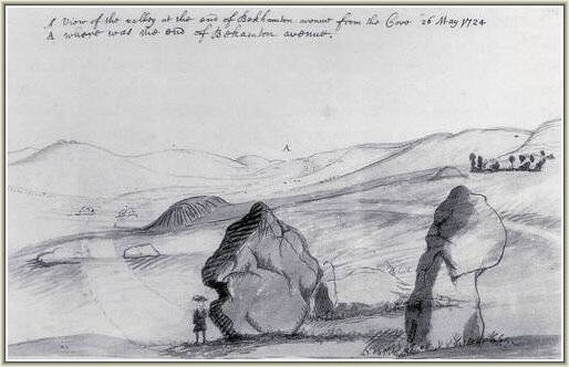 William Stukeley's drawing of the Beckhampton Cove....The Longstones are arrowed