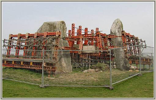 As a result of safety concerns the "male" component of the Cove has now been adjusted to a more upright position as can be seen on this recent image when compared to the earlier photograph near the top of the page. This is the first major alteration to the appearance of the henge since Alexander Keiller carried out his restoration in the 1930's.