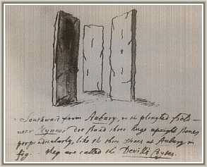 Aubrey recorded three stones of a cove in the area where the modern road now interferes with the course of the avenue. They were also mentioned by Stukeley who referred to them as the "Devill's Coyts". However, some doubt remains as to whether Stukeley actually saw these stones himself and their existence has yet to be confirmed by modern researchers. Unfortunately the difficulties posed by their assumed location makes any such confirmation unlikely in the foreseeable future. The fact that the Beckhampton Avenue contains a cove implies that they may have been important components of both avenues. Uncertainties regarding the correct route and composition of the avenue still prevail. Since Keiller's restoration more recent surveys and excavations have attempted to resolve some of these issues as the extract below reveals.