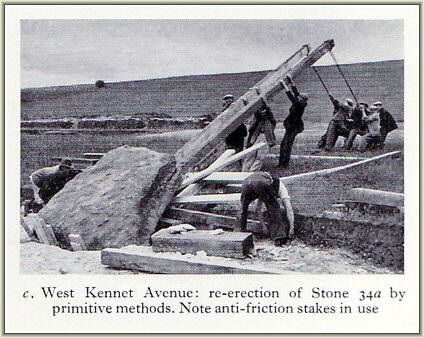 The stone designated 33a in the avenue has become the subject of some controversy after it was re-erected by a team of workers under the direction of Mrs Maud Cunnington in 1912. When Alexander Keiller acquired the land 20 years later he deduced it had been restored in the wrong position and moved it by about 2 metres. He also decided that Mrs.Cunnington had erected it the wrong way up so he inverted it. From the evidence of staining visible on the stone modern researchers have now concluded that the Cunnington orientation was correct after all. Keiller's placement of it, though, is accepted as the accurate one......it might therefore be considered a case of an archaeological draw !! (As yet there are no plans to make any change).