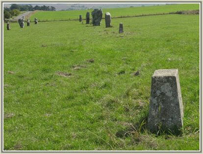 Like the stones of the cove those of the avenue are of male and female types and had been deliberately erected in pairs with a male stone facing a female stone and vice versa along the length of the avenue. Female stones are crudely diamond shaped, male stones are more pillar-like.