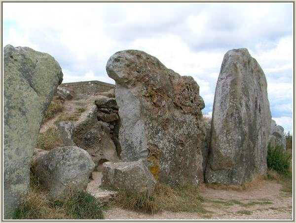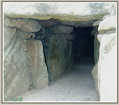 Looking into the interior of the barrow. The stone on the left has been used for sharpening flint axes as the deep grooves on its surface reveal.